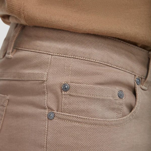 Crafted from premium comfort stretch cotton blend, our Preston five-pocket pant features a printed micro basketweave pattern. The classic straight leg silhouette includes two front pockets, one coin pocket, and two back pockets with gunmetal shank buttons and rivets. The Preston pants is a timeless look with enduring popularity.