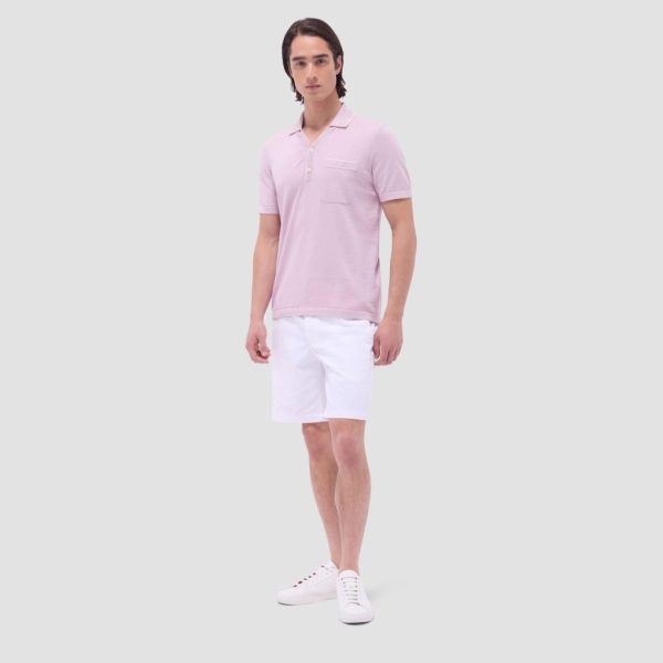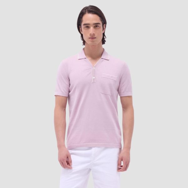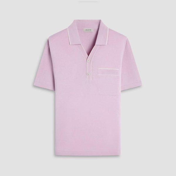This cotton-silk blend Johnny collar short sleeve sweater is crafted from a soft jersey knit, offering a smooth, lightweight feel. It features a refined two-button placket and a convenient chest pocket for added functionality. The tipping detail on the tonal ribbed collar, cuffs, and hem adds a subtle contrast that enhanced the overall design. This sweater is ideal for both casual and semi-formal occasions.