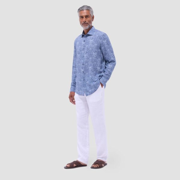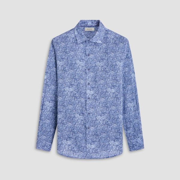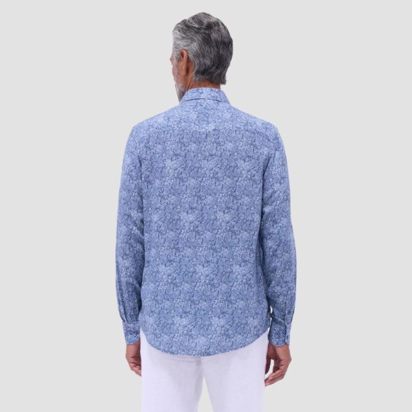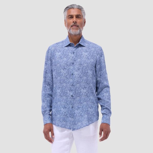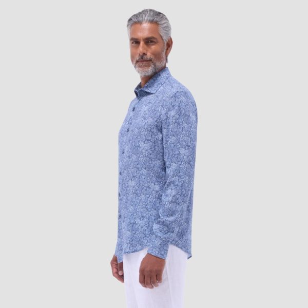 The Axel long-sleeve shirt in floral print is crafted from a viscose and linen Italian fabric, and features a spread collar, mother-of-pearl buttons, a curved hem that can be worn tucked or untucked, and notched cuffs adjustable for a custom fit-wear them snug or loose. The softness and fluid drape of viscose combined with the natural texture of linen in a shirt that feels soft and luxurious on the skin, with a relaxed yet refined look.