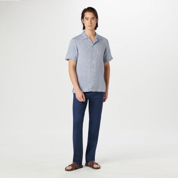 Men Casual Shirts | Bugatchi Jackson Solid Linen Camp Shirt Navy