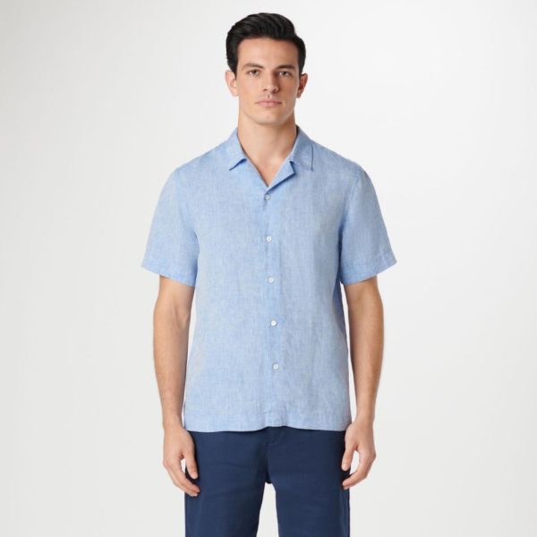 Men Casual Shirts | Bugatchi Jackson Solid Linen Camp Shirt Sky