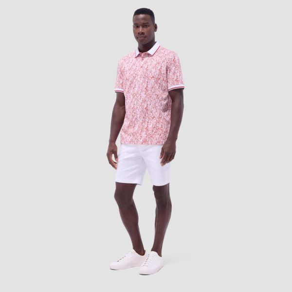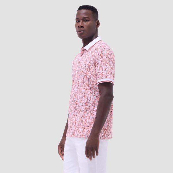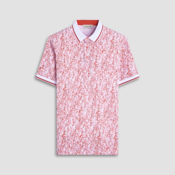 Upgrade your resort style with this leaf print polo shirt, made from 100% Pima cotton with ultra soft Turkish finish. Featuring a three-button placket, mother-of-pearl buttons, and contrast striped rib-knit collar and cuffs, this polo blends comfort, style, and function. Perfect for a casual day or peak performance on the golf course, this shirt ensures you always look and feel your best.