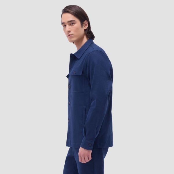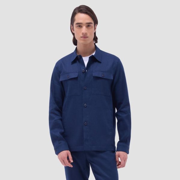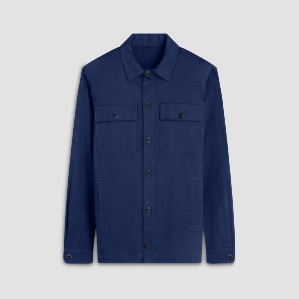 Crafted from a premium linen-cotton blend with added stretch, this shirt jacket combines comfort with style. Inspired by traditional safari jackets, it features elegant mother-of-pearl buttons, a point collar, and buttoned cuffs, two chest patch pockets with flaps and buttons, plus two vertical front pockets with covered zipper closures for secure storage. This versatile jacket is the perfect blend of fashion and function, ideal for any occasion.