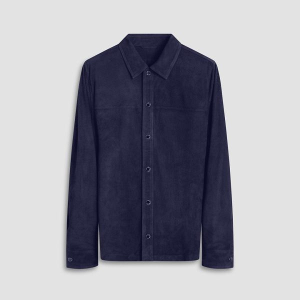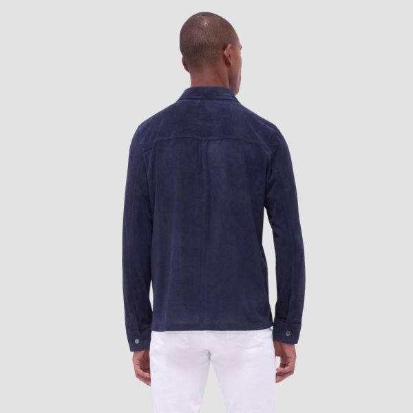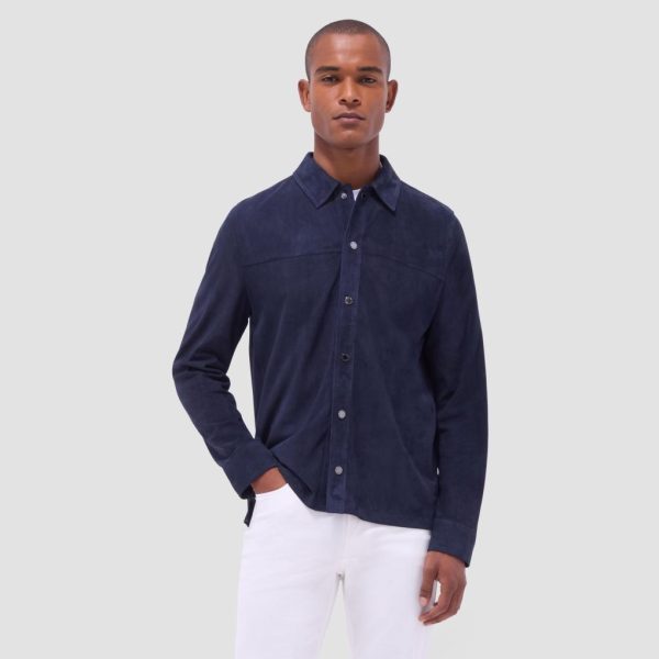 Shirt jacket in 100% goat suede offers a sophisticated mix of texture and style with the body in perforated suede and the collar, cuffs, and placket in smooth, flat suede for sleek contrast. Designed with a classic point collar, full snap closure and side vents, it combines the lightweight feel and structured look of a shirt with the durability and layering capability of a jacket, making it perfect for transitional weather.
