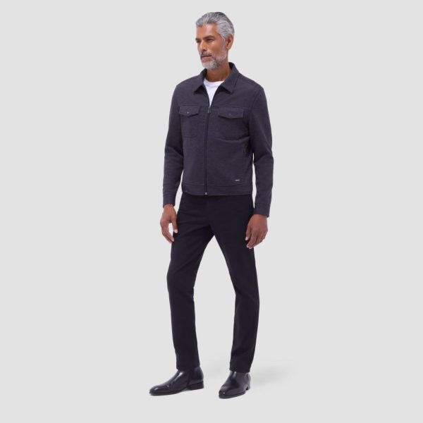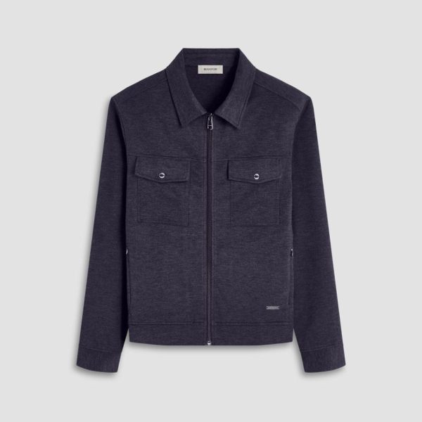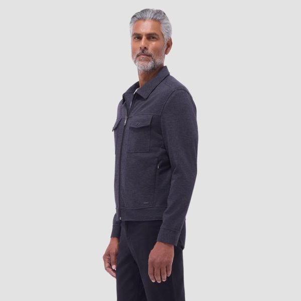 Crafted from Soft Touch performance knit fabric with a heather pattern, this shirt jacket combines comfort and practicality with a modern edge. Designed with a full zipper closure and classic point collar, it also includes banded cuffs and waist for a snug fit, patch and flap chest pockets with snap closures and side seam pockets with invisible zippers. Perfect for casual layering or transitional weather.