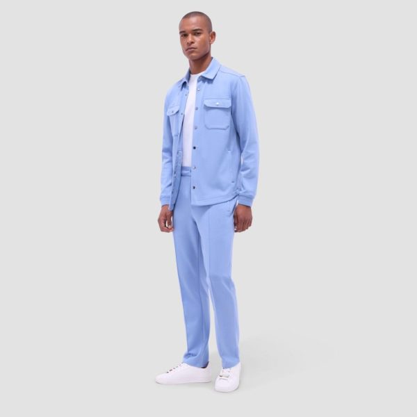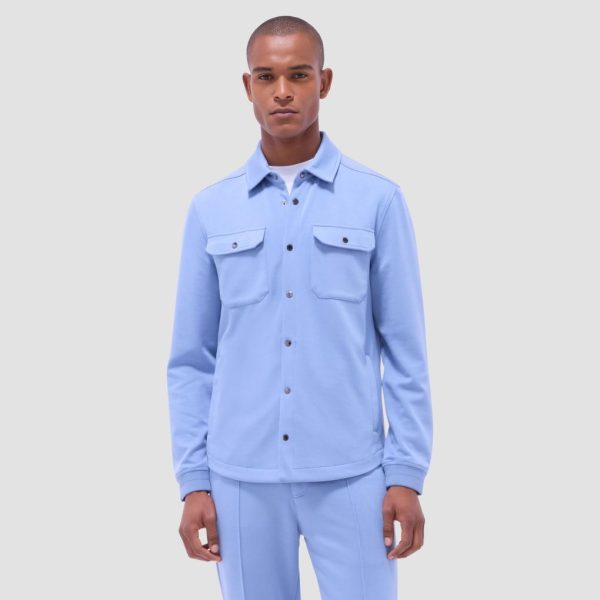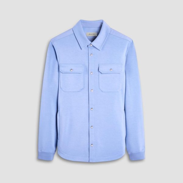 This solid long-sleeve shirt jacket is made from performance Soft Touch knit fabric with stretch for all-day ease. Designed with a point collar, nylon trim detail and full snap closure, it offers a classic yet modern look. Featuring two patch and flap chest pockets with snaps, zippered side pockets, and ribbed cuffs, this versatile jacket is perfect for layering and transitioning between seasons.