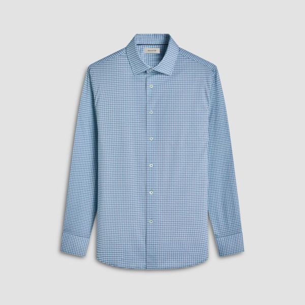 The James OoohCotton shirt in gingham check print features a point collar, mother-of-pearl buttons, and a curved hem for a sleek tucked or untucked look. The notched cuffs are adjustable to allow for customized fit and also convertible to accommodate cufflinks. OoohCotton is a performance, double-mercerized, wrinkle-resistant, breathable, and easy-care cotton blend with 8-way stretch, quick-dry, and thermal comfort properties.
