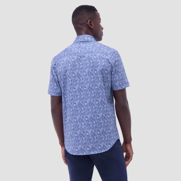 The Miles OoohCotton short-sleeve shirt in floral print features a point collar, mother-of-pearl buttons, and a curved hem for a sleek tucked or untucked look. OoohCotton is a performance, double-mercerized, wrinkle-resistant, breathable, and easy-care cotton blend with 8-way stretch, quick-dry, and thermal comfort properties.