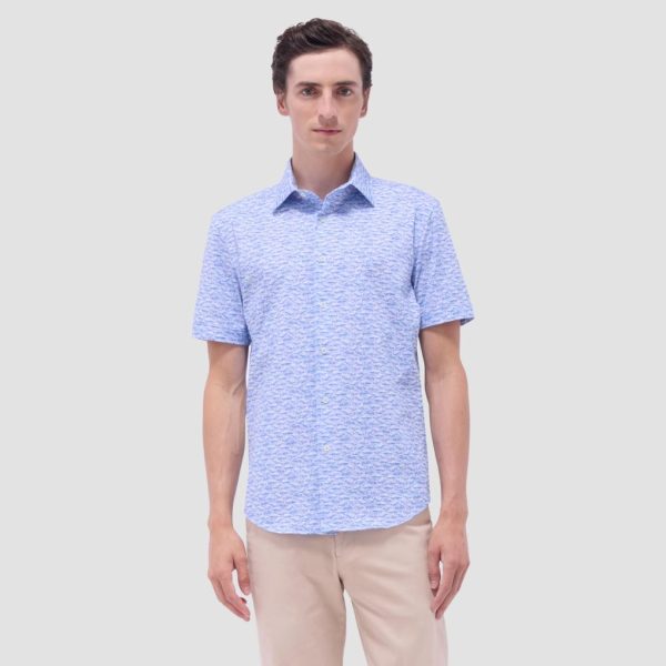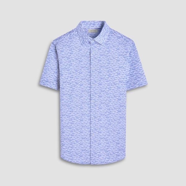 The Miles OoohCotton short-sleeve shirt in vintage car print features a point collar, mother-of-pearl buttons, and a curved hem for a sleek tucked or untucked look. OoohCotton is a performance, double-mercerized, wrinkle-resistant, breathable, and easy-care cotton blend with 8-way stretch, quick-dry, and thermal comfort properties.