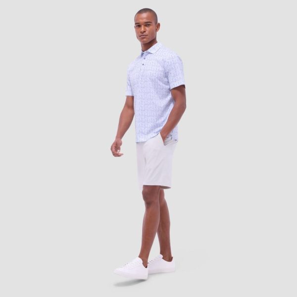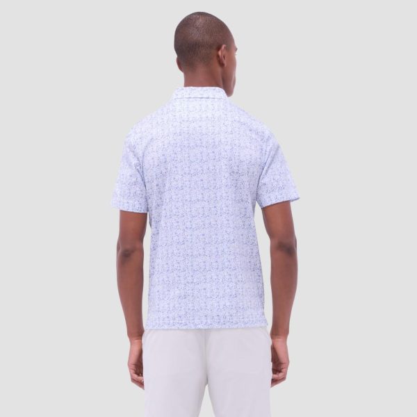 The Victor OoohCotton short-sleeve polo shirt in abstract print featuring a three-button placket and a self-fabric collar is perfect for casual days or the golf course. OoohCotton is a performance, double-mercerized, wrinkle-resistant, breathable, and easy-care cotton blend with 8-way stretch, quick-dry, and thermal comfort properties.