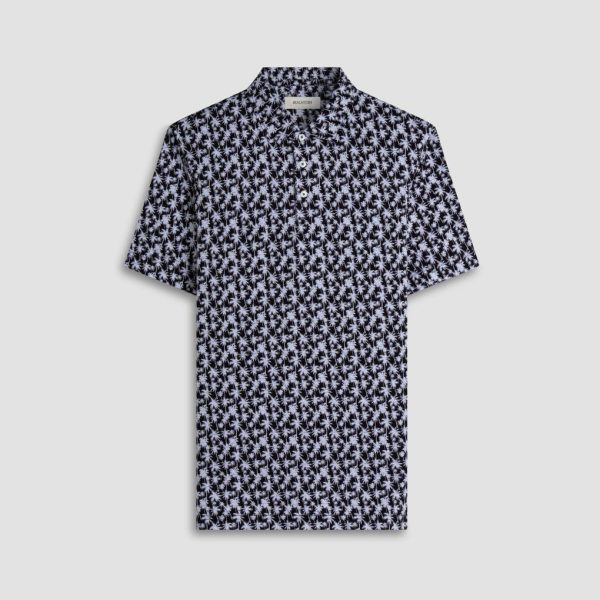 The Victor OoohCotton short-sleeve polo shirt in palm tree print featuring a three-button placket, mother-of-pearl buttons, and a self-fabric collar is perfect for casual days or the golf course. OoohCotton is a performance, double-mercerized, wrinkle-resistant, breathable, and easy-care cotton blend with 8-way stretch, quick-dry, and thermal comfort properties.