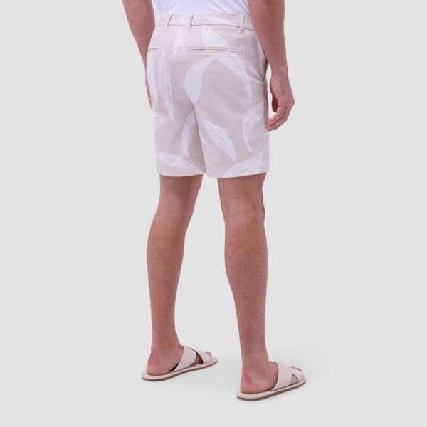 These printed chino shorts bring a touch of nature-inspired style to your wardrobe with a subtle leaf print motif. Crafted from a Comfort Stretch cotton blend, they feature a looped waistband finished with a refined corozo button, slanted side pockets and two welted back pockets. Perfect for warm-weather wear, these shorts combine comfort and a laid-back vibe, and offer a polished look for casual outings.