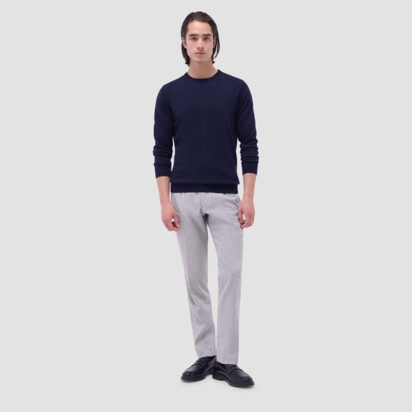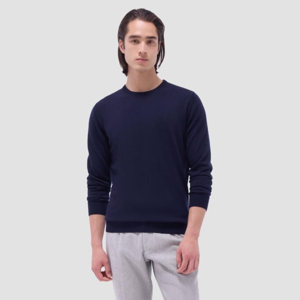 The Scott crew neck sweater in 100% Super Merino wool with Harmony 4.0 special finish is made in Italy and features a ribbed neckline, sleeve cuffs and waistband. Super Merino wool is a high grade, extra fine, exceptionally soft wool that is breathable, moisture-wicking, water repellent, machine-washable, and crease-proof for long lasting performance wash after wash.